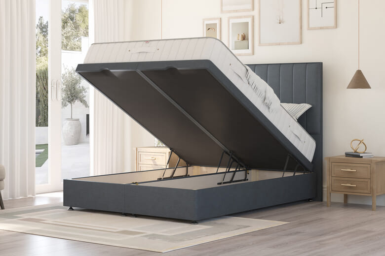 Paired with the mattress, the Ottoman Divan Bed offers a sturdy, supportive platform while maximising under-bed storage. The smooth lift-up ottoman mechanism provides easy access to a spacious hidden compartment, perfect for storing bedding, clothing, or seasonal items. Upholstered in a choice of contemporary fabrics and finished with sleek chrome-effect feet, the base adds a clean, coordinated look to your bedroom.