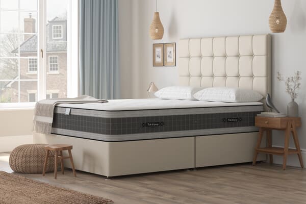 - Premium upholstered divan base delivers a structured, timeless bedroom finish